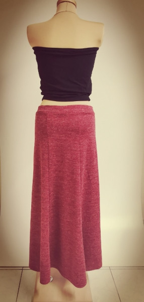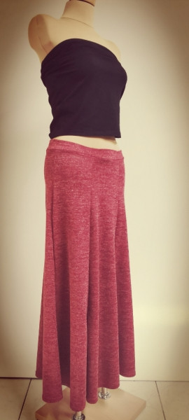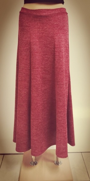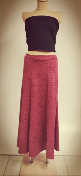Dlouhá sukně ušita za šesti rozšiřujících se dílů.